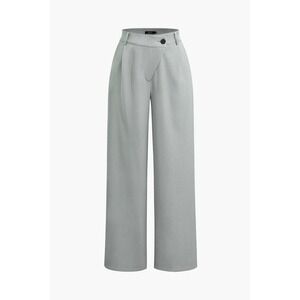 Sophisticated wide-leg trousers, perfect for elevating your professional or casual wardrobe. These pants feature a flattering high-waisted design with a unique asymmetrical button closure, creating a sleek and modern silhouette. The wide-leg cut offers both comfort and style, making them ideal for all-day wear. These trousers are a versatile piece that can be dressed up with a blouse and heels for a business meeting or dressed down with a casual top for a chic weekend look. Perfect for the office, a business casual event, or a stylish night out.