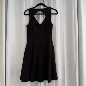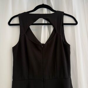 LOFT black sleeveless fit and flare dress with a flattering bodice and flared skirt. Features hidden side pockets, stretch fabric for comfort, and a back zip closure with a subtle cutout detail. Easy to wear for work events, dinners, or everyday occasions.