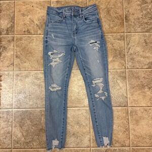 American Eagle Jeans High Waisted Distressed Ripped Light Wash Size 2 Short