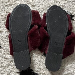 A New Day size 6.5 Women's Burgundy Faux Fur Slide Sandals