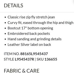 Silver Jeans Co. Natsuki Jeans Bootcut Classic Womens Bohemian Western Chic