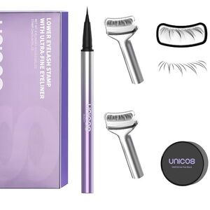 Unicos 2-in-1 lower lash stamp with ultra-fine eyeliner pen. Easy to use and long-lasting. Waterproof and smudge-proof.