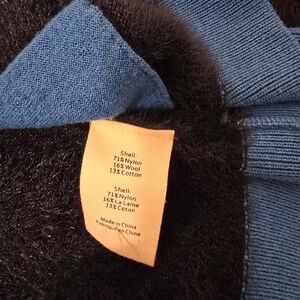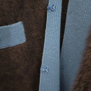 This fuzzy cardigan is styled with welt pockets and contrast trim.