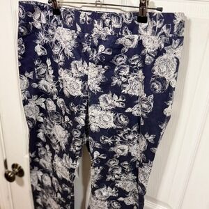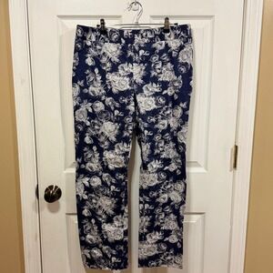 Brooks Brothers Natalie Fit Navy Floral Print Cropped Pants Womens Size 12