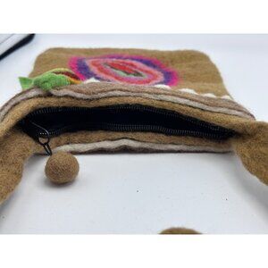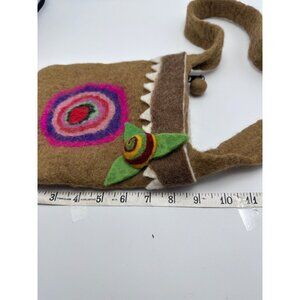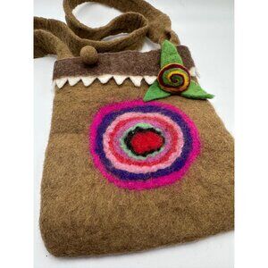 Handmade Wool Felt Crossbody Bag Colorful Spiral Design Leaf Accent Nepal