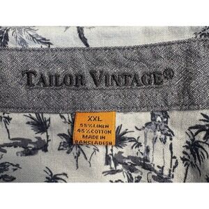 Tailor Vintage Men's Linen Blend Short Sleeve Shirt Blue Palm Trees Vacation XXL