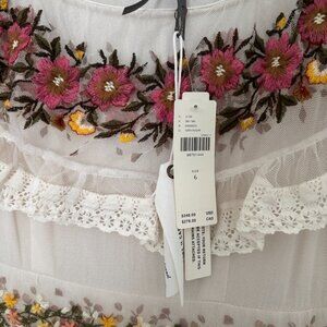 NWT By Anthropologie Ruffle-Sleeve V-Neck Embroidered Tulle Tiered Maxi Dress size 6