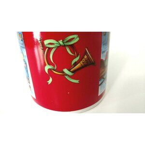 Old World Christmas Holiday Mug Cup Stoneware 12 oz with Santa and Kids Red FLAW