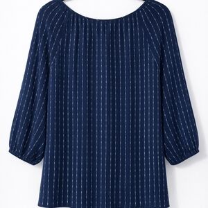 Elegant navy striped top with a relaxed fit. Perfect for any occasion.