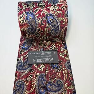 Robert Talbott Best of Class Nordstrom Silk Tie Red Blue Gold Paisley Luxury Menswear. Elevate your look with this luxury Robert Talbott "Best of Class" tie, made exclusively for Nordstrom. Featuring a bold red, blue and gold paisley design, this 100% silk tie adds timeless sophistication to any suit or dress shirt. Ready to wear!