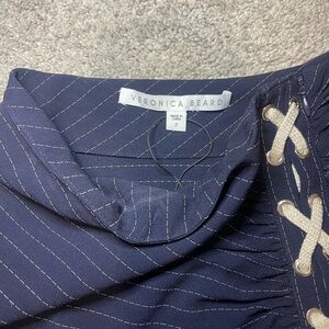 Veronica Beard Navy Pencil Skirt with White Stripes