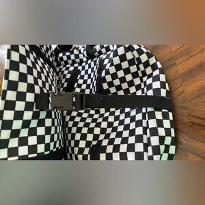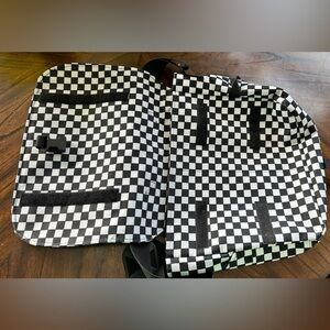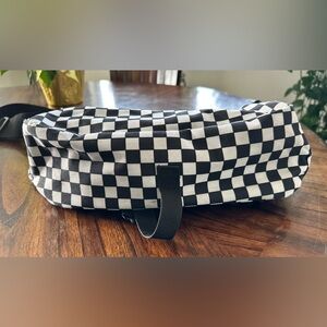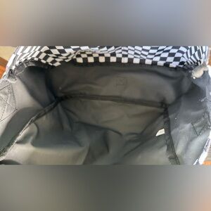 Checkered Dickies messenger bag. No odors, one small spot (see 4th photo), and no tears. Great condition. Zipper pocket on outside, no pockets on the inside, velcro and clip enclosure.