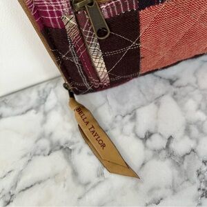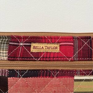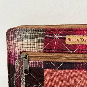 Bella Taylor Quilted Wallet Plaid Patchwork Zip Wristlet Red Tan Cotton