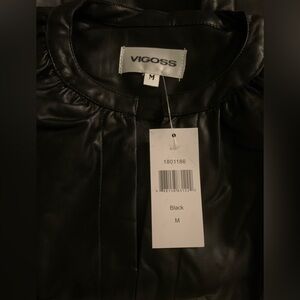NWT Faux leather cute Black VNeck mini dress Stretch Fabric