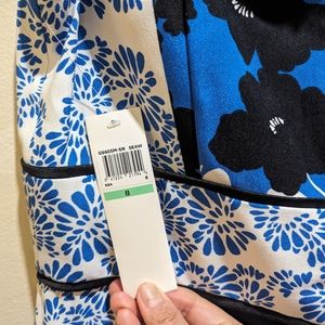 Maggy London *NWT Blue, Black & White floral patterned. Square neckline wide shoulder straps, back hidden zipper, hook & eye closure. Top of the dress is lined.