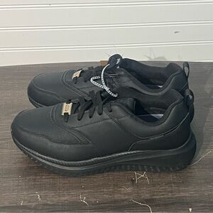 Sleek black sneakers with a modern design. Comfortable fit for daily wear. Durable sole for long-lasting use.