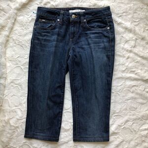 Dark Wash Joe’s Jeans Denim Capri in the Style Honey and Wash Miranda.