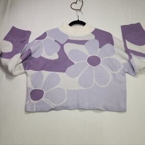 H&M Purple & White Floral Sweater โ Medium ๐