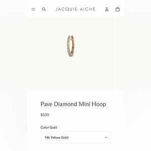 Jacquie Aiche Fine Jewelry Pave Diamond Mini Hoop Earring $530 Yellow Gold New