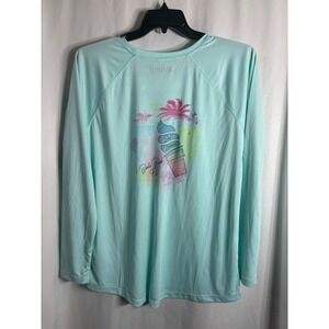 Altered Latitudes Womens XL Aqua Ice Cream Palm Tree Graphic Long Sleeve Shirt