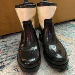 Charter Club Trudy Black Fleece Plastic Rain Boots Sz 8