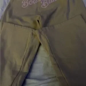 Rare Abercrombie Fitch Tan Sweatpants w/Embellish snowflake & board bum on butt