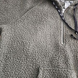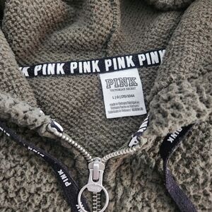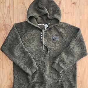 Victoria's Secret PINK Olive Green Sherpa Varsity Fleece Half-Zip - LG