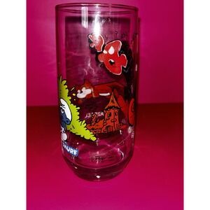 This vintage Gargamel & Azrael Smurfs glass tumbler cup is a rare collectible from 1982, featuring characters from the popular animation franchise "The Smurfs." Produced by Peyo and Wallace Berrie & Co, this multicolor glass tumbler stands at 6 inches tall and is a unique piece of animation merchandise that would appeal to fans of the series. Made in the United States, this item is a nostalgic reminder of the beloved characters from the iconic TV show.