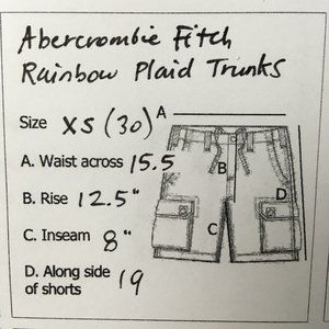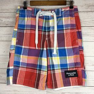 Abercrombie Fitch Mens Swim Shorts XS 29 to 30 Cotton Blend Rainbow Plaid Trunks