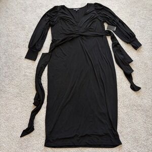 Eloquii Faux Wrap Maxi Dress Womens 18 Black V Neck NWT Formal Elegant