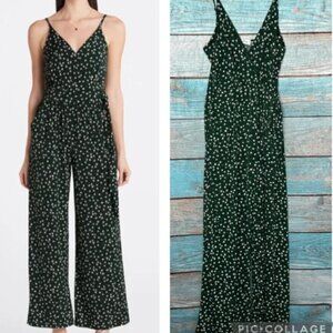 Kaileigh Green Knit Jumpsuit Floral Wide Leg Crop Ankle Size MP NWOT