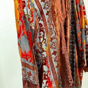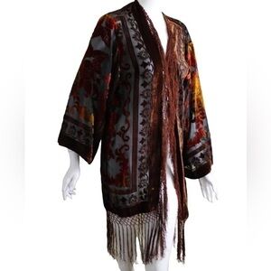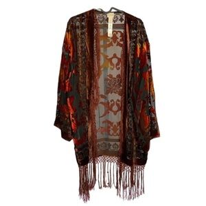 CHICO’S (Size S/M) Kimono Rust Velvet with Fringe Dolman Sleeves