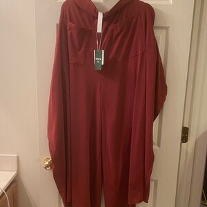 Elevate your wardrobe with this stylish rust button-up shirt dress. It has pockets. Side slits 18” Perfect for any occasion, this dress offers a relaxed fit and a chic look. Ptp 23” length 52”.