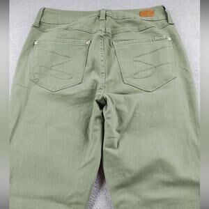 Seven7 jeans were introduced in the early 2000s as a premium denim brand focused on fit and comfort. The Tummyless design features special construction to provide a slimming effect at the midsection. These jeans appeal to fashion-conscious consumers seeking both style and comfort in everyday denim. The olive green color offers versatility beyond traditional blue denim while maintaining the brand's reputation for flattering silhouettes.