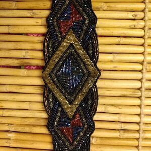 EUC VINTAGE MAJID Unique Glass Beaded Multicolored Diamond Patterned Belt 32-34