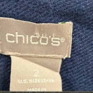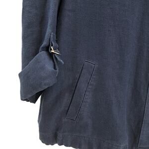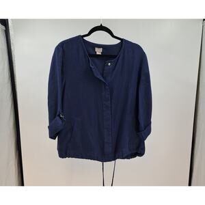 Chico's Utility Jacket 2 L Linen Snap Front 3/4 Tab Sleeve Lightweight Navy Blue