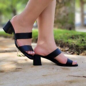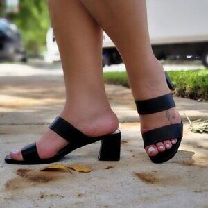 Women's Black Square Sole Double Strap Chunky Heel Sandals