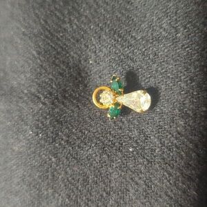 Gold Tone Green and Clear Rhinestone Angel Dainty Delicate Statement Pin Brooch. Approximately 5/8" in size.