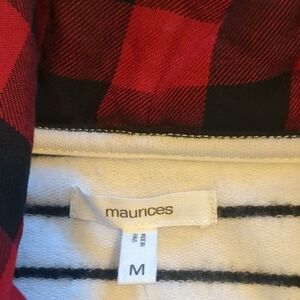 NWT Maurices Striped Hoodie With Hunter Plaid Contrast, nicely tailored with rough hewn stitching at the hem and sleeves. Ideal for everyday style. Super soft Great spring or fall for beach cover-up, not super heavy like typical sweatshirts.