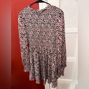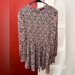 Lulus Floral Forever Green and Pink Floral Print Smocked Skater Dress NWT