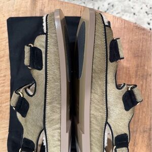 New Chanel Calf Hair Suede Shearling Dad Sandals Size 38 Beige