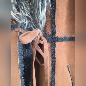 Vtg Brown Faux Suede Fur Hooded Full Length Long Afghan Penny Lane Coat Sz M