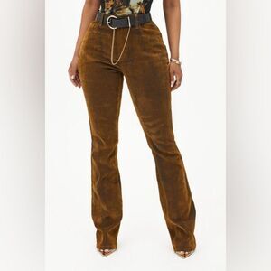 Stylish brown corduroy pants perfect for any occasion. Comfortable and chic, these pants are a must-have addition to your wardrobe.