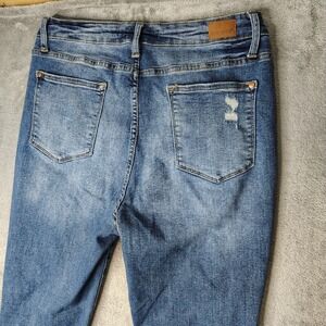 Judy Blue Jeans Womens 32 Blue Boyfriend Medium Wash Distressed Stretch Denim