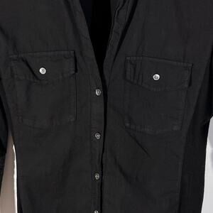 James Perse Black Button Front Shirt Stretch Pocket Long Sleeve Size L