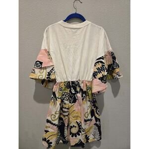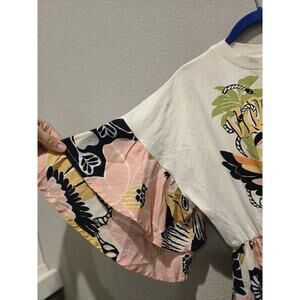 Brighten up your wardrobe with the FARM Rio Mini Dress, a vibrant celebration of tropical artistry. This short, multicolor dress features a playful pattern of toucans and colorful foliage, perfect for adding a splash of fun to your summer outings. The round neckline and wide flowy 3/4 sleeves offer a relaxed fit, while the elastic waistband ensures comfort and style. Ideal for casual gatherings, beach parties, or a sunny day out, this dress is your go-to for effortless chic. New condition.