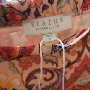 New With Tags Status By Chenault Boho Floral Chiffon Ruffle High Low Women's Skirt Size Large . Elastic Back Waist, Lightweight, Lined, Pull On . Length Back 36 in Front 22 in , Waist 32 in . Same Day Shipping / Next Day