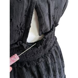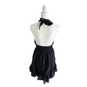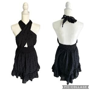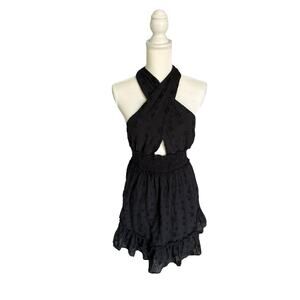 Aerie Spring Fling Eyelet Black Crossover Halter Mini Lined Dress Size Small