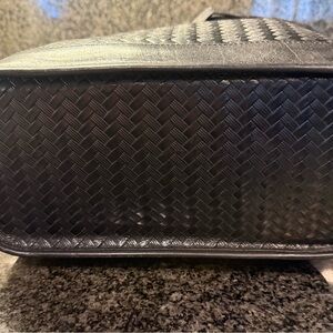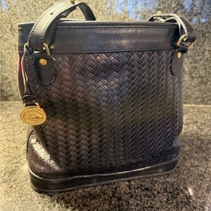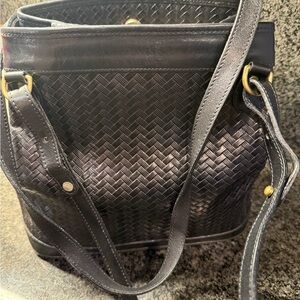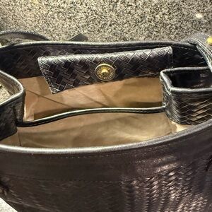 Brahmin black woven leather tote bag with gold accents. Perfect for everyday use. Great condition. Vintage