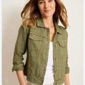Temps may be rising, but you'll be cool and comfortable in this fun linen jacket. We've fashioned our fabulously smooth linen into a classic jean-jacket silhouette, so you can enjoy the look without the weight. Vertical seaming creates slimming lines, while raw edges add a touch of toughness. Pair it with your favorite cami, tank, tee, or dress for a great year-round look.